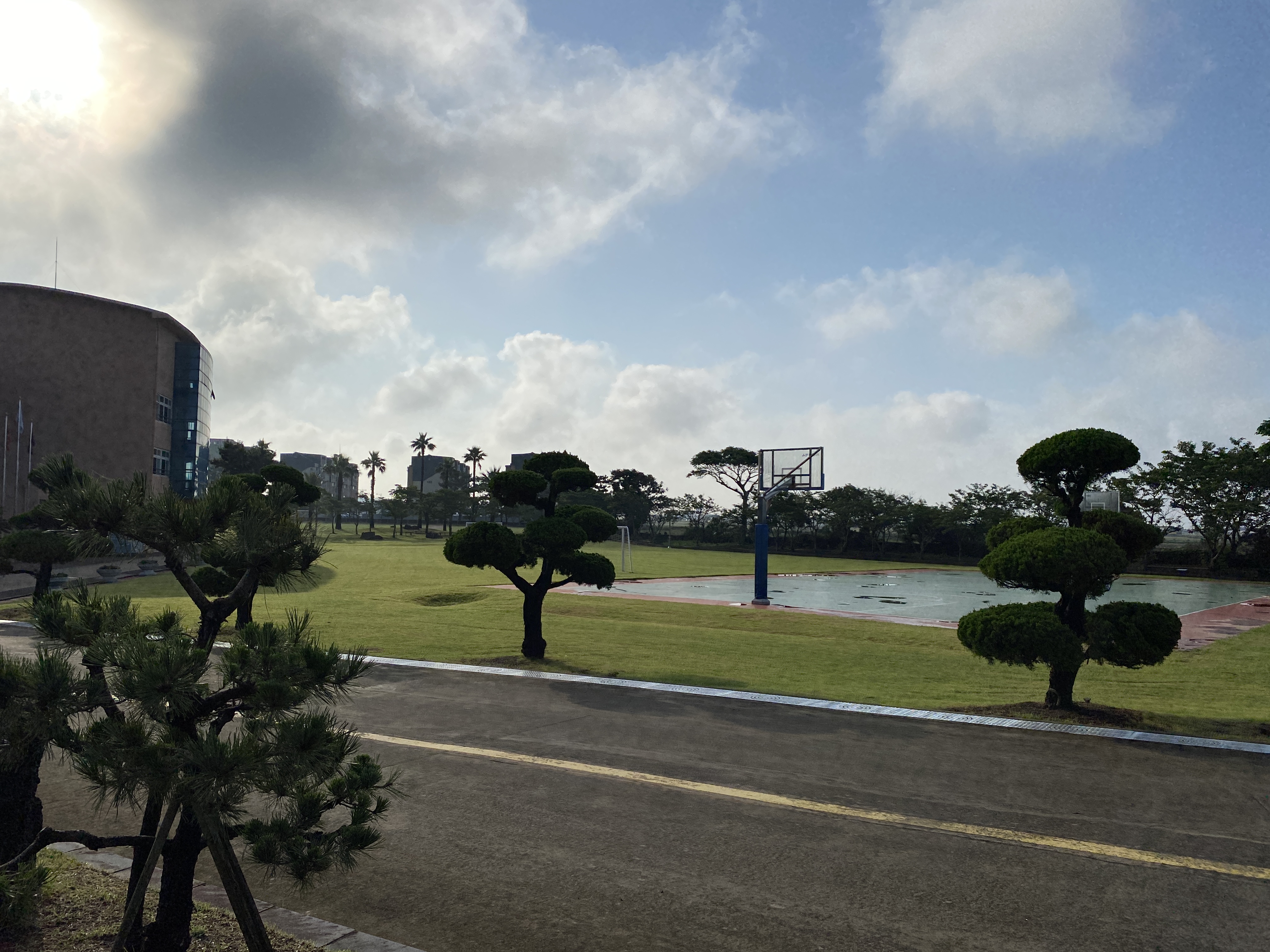 푸르른 야자수와 소나무가 멋들어진 학교.