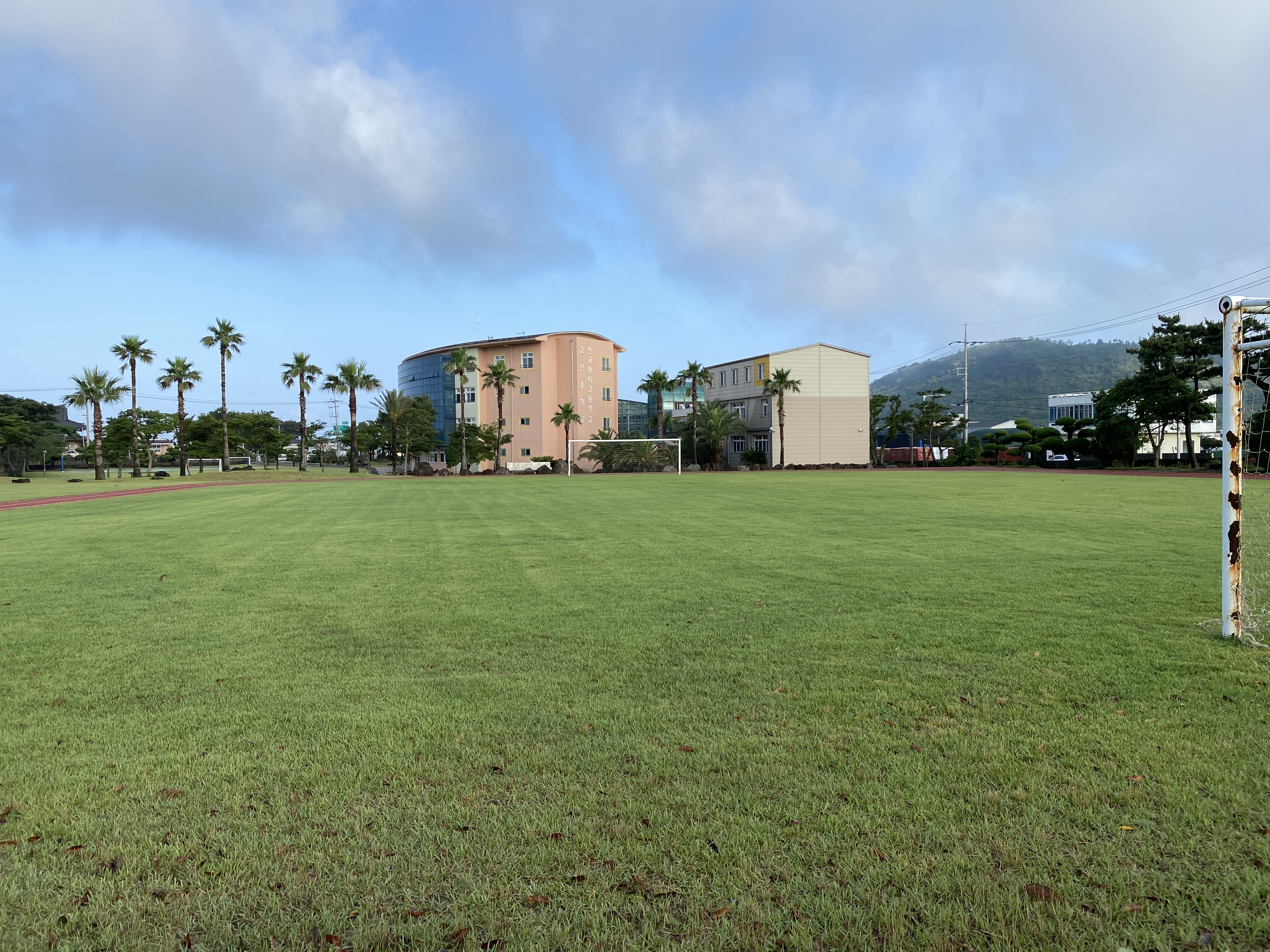 학교를 들어서면 좌측은 건물. 우측은 시원한 잔디운동장이 눈길을 사로잡습니다.